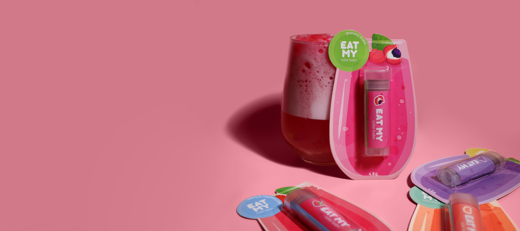 Оттеночный бальзам EAT MY объединил в себе лучшие свойства «классической» версии – бережный уход, защиту от обветривания, аппетитный аромат и нежную тающую текстуру – с равномерным полупрозрачным оттенком и нежным глянцевым финишем для эффекта сочных, ухоженных губ.